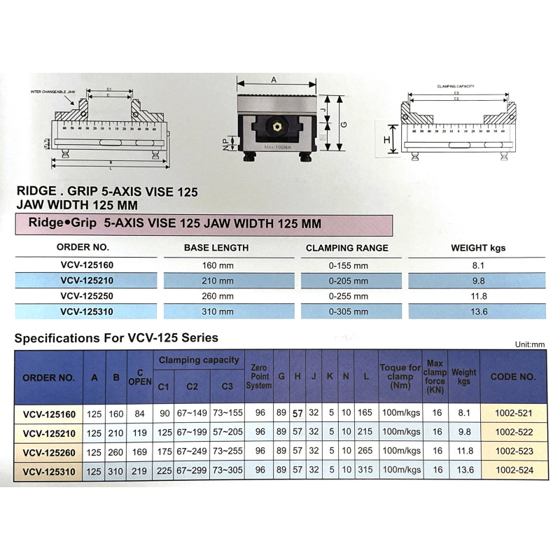 Profesionální 5-osý svěrák Vertex Ridge Grip je určen pro moderní CNC obráběcí centra, zejména pro 5-osé a vertikální stroje s rotačními stoly. Díky kompaktní konstrukci, vysoké tuhosti a přesnému vedení patří mezi špičku ve své kategorii. Vyniká stabilním upínáním, snadným nastavováním a dlouhodobou životností i při náročném provozu.