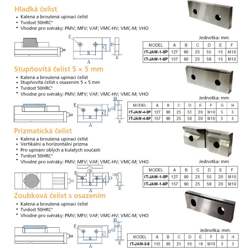 - Vhodné pro svěráky typu TAF-6, PMV-160, MFV-160, VAF-6 aj.