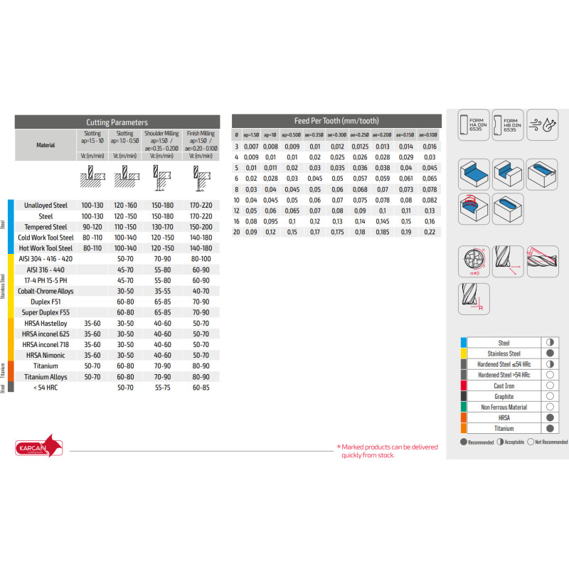 - Určeno pro obrábění ocelí, nerezových ocelí, kalených materiálů (do cca 55 HRC), litin, HRSA slitin a titanu