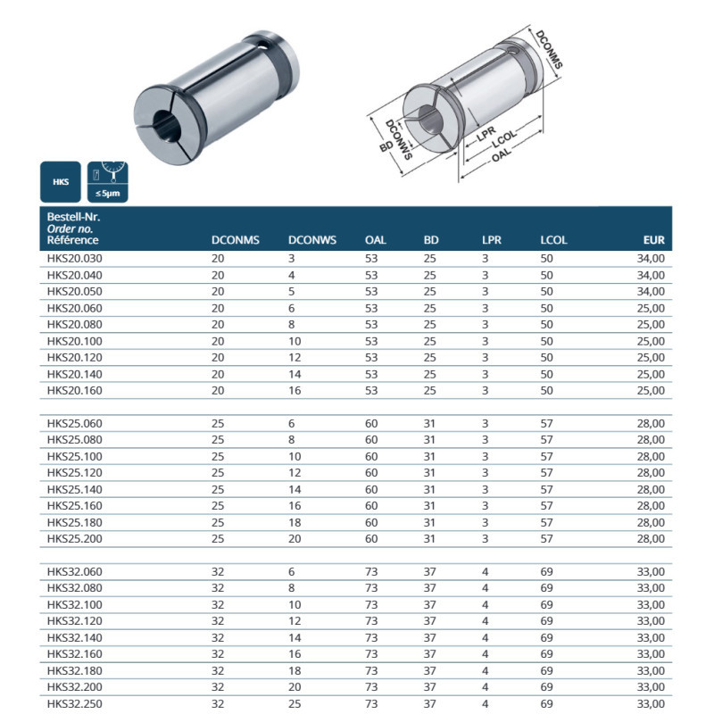 - Upínací průměr je konfigurován pro toleranci nástroje h6