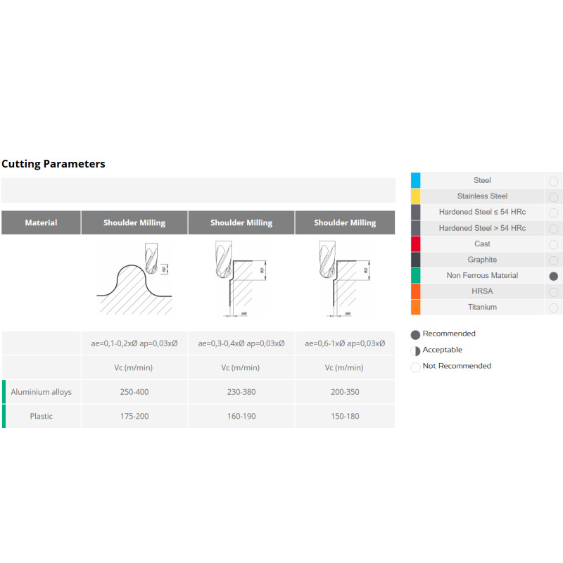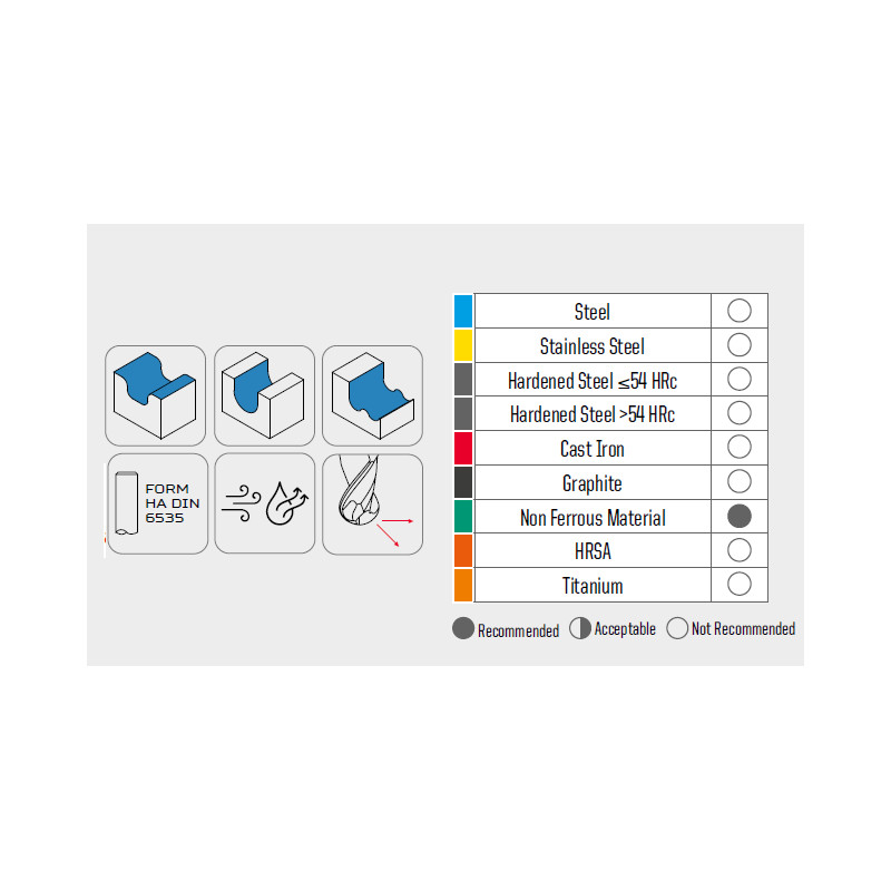 Nástroje této série jsou určeny pro obrábění ocelí, nerezových ocelí, litin i dalších běžných kovových materiálů, včetně neželezných slitin, kde je kladen důraz na kvalitu povrchu a přesnost tvaru.