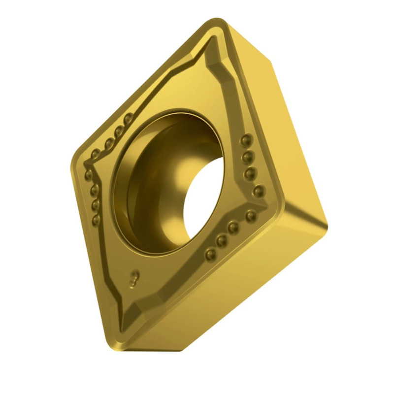 - Pozitivní soustružnická destička typu CCMT (80°) určená pro přesné a stabilní obrábění při dokončovacích i lehkých hrubovacích operacích
