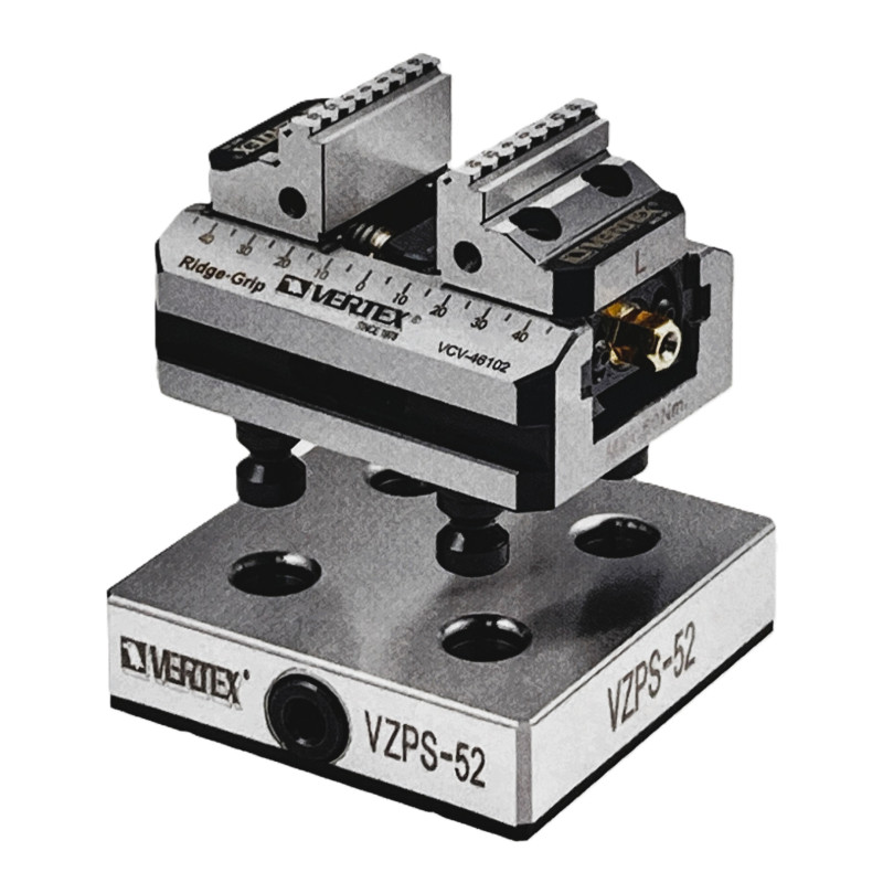 - Zero-point upínací deska VERTEX VZPS-52 je součástí normovaného nulového upínacího systému určeného pro rychlou a přesnou výměnu přípravků a svěráků na obráběcích centrech